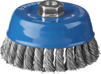 Чашечная щетка с пучками из стальной проволоки Зубр Профи 120 мм предназначена для удаления краски и ржавчины с металлической поверхности, а также оптимально подходит для очистки сварных швов.