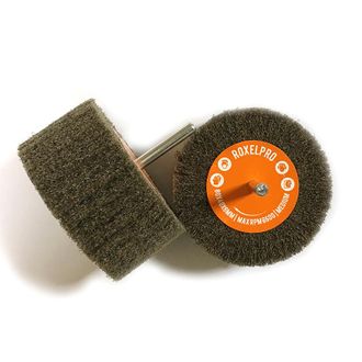 Лепестковая нетканая щетка RoxelPro ROXTOP на шпинделе 40x20x6мм используется для обработки стали и нержавеющей стали (INOX), дерева, пластмассы, композитных материалов.