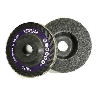 Нетканый прессованный круг на подложке RoxelPro ROXPRO 125x19x22мм, 3S Fine используется для удаления рисок после шлифования, полировки дефектов, удаления заусенцев и скругления кромок, легкого удаления окалины.