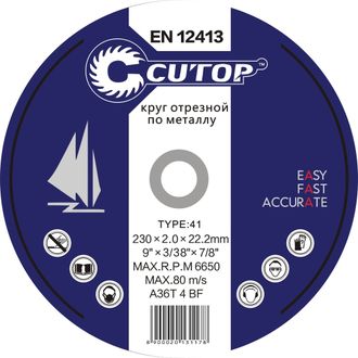 Отрезной круг по металлу CUTOP Т41-125х1,0х22,2 предназначен для резки нержавеющей стали и обычного металла.