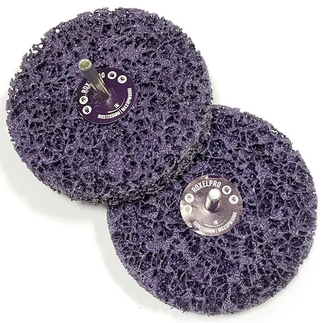 Пупырчатый зачистной круг RoxelPro Clean&Strip 100x13x6 мм на шпинделе представляет собой чистящее волокно, имеющее очень грубую структуру и состоящее из синтетического волокна и абразива. Открытая волоконная структура диска обеспечивает быстрое шлифование с очень незначительным засаливанием. Безопаснее чем проволочная щетка.