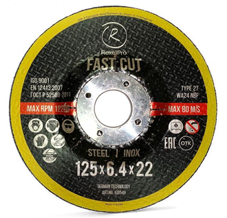 Зачистной круг RoxelPro ROXTOP FAST CUT 125x6.4x22мм, Т27, нерж.сталь, металл